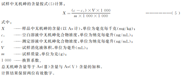 本標(biāo)準(zhǔn)第一篇規(guī)定了食品中總砷的測定方法。本標(biāo)準(zhǔn)第二篇規(guī)定了食品中無機(jī)砷含量測定的液相色譜-原子熒光光譜法、液相色譜-電感耦合等離子體質(zhì)譜法。